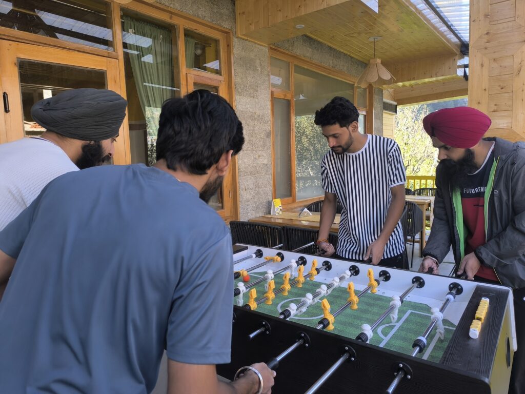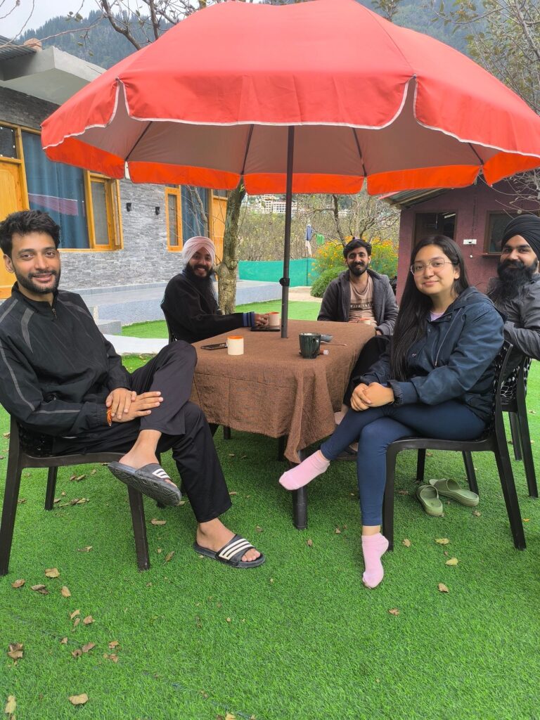 Mornings in Manali came with the best kind of distractions—breathtaking views right from our window. But work didn’t stop, and neither did we. With laptops open and a stunning backdrop of the Himalayas, we found ourselves striking the perfect balance between responsibilities and relaxation. Once the workday wrapped up, adventure awaited. A short trek to Jogini Waterfalls was just what we needed to refresh our minds and spirits. The trail led us through lush greenery, winding paths, and small wooden bridges, finally opening up to the majestic falls. The sound of gushing water mixed with the cool mountain breeze made us pause and take it all in—this was what we came for.