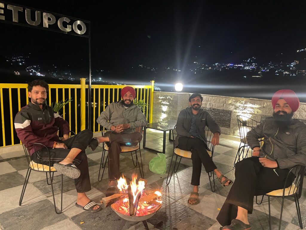 The moment we arrived in Manali, the crisp mountain air and towering deodar trees welcomed us with open arms. We took our first stroll through the ever-bustling Mall Road. The streets were alive with the scent of local delicacies, the chatter of travelers, and shops lined with colorful souvenirs. The excitement of being here finally sank in as we soaked in the vibrant atmosphere. Later that night, we gathered around a crackling bonfire, letting the warmth of the flames match the laughter and conversations that flowed effortlessly.